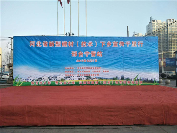 2017年12月7日,邢臺市泓升建材節能有限公司攜手建設廳于寧晉站一起舉行下鄉宣傳活動!其宗旨:解百姓之憂,幫企業之難,讓新型建材在農村落地生根!